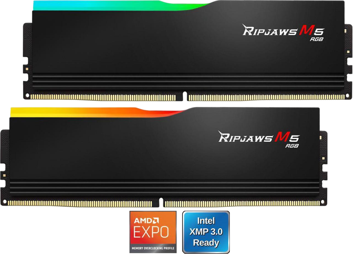 A Ripjaws M5 RGB é uma série de memórias DRAM DDR5 de alto desempenho projetada para entusiastas de PC e gamers. Com dissipadores de calor em alumínio preto fosco ou branco fosco e iluminação RGB personalizável, a Ripjaws M5 RGB é o kit de memória ideal para uma ampla variedade de configurações e temas de PC.